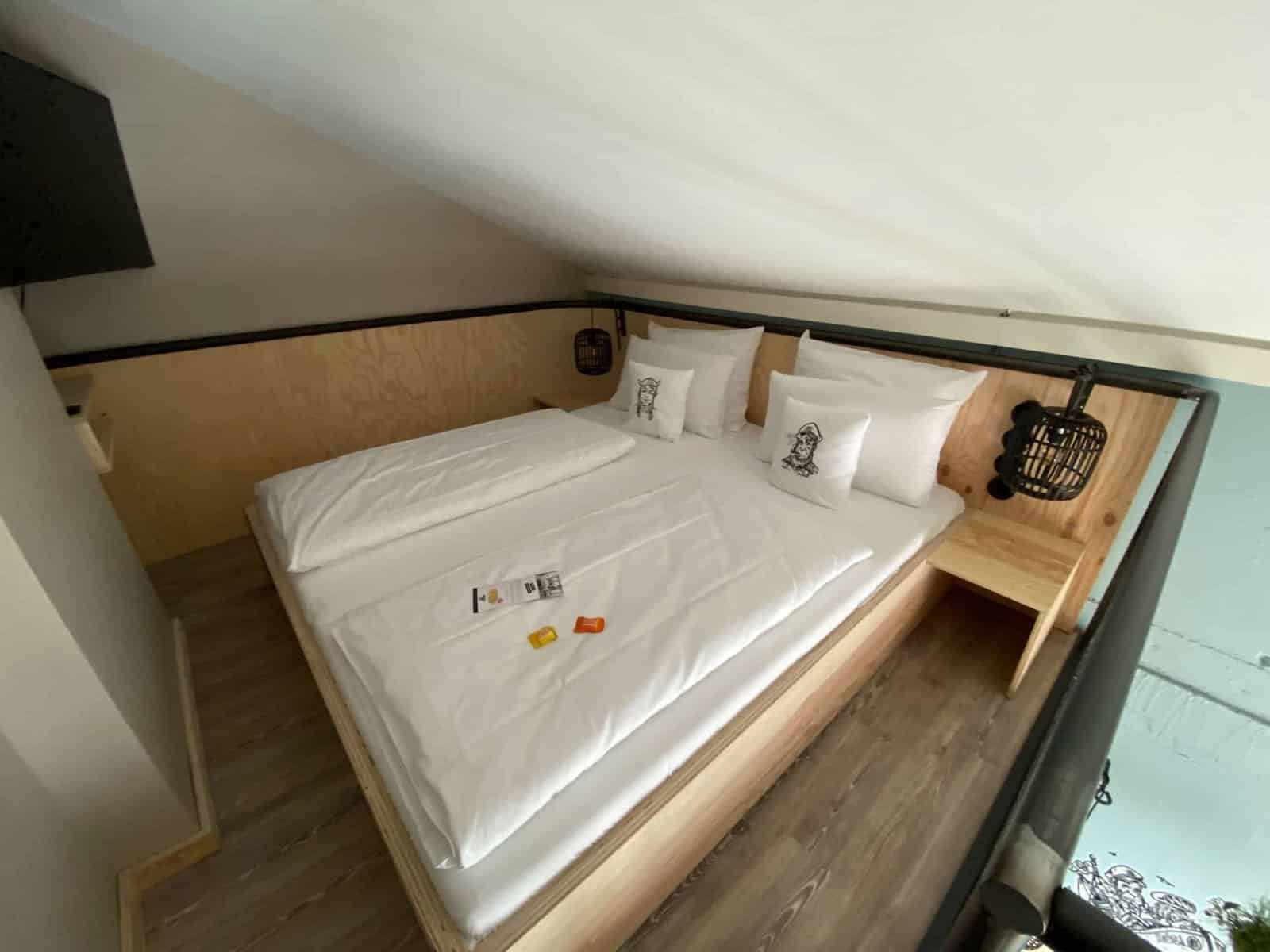 Unser Zimmer, die „Butze Nr. 103“, war kaum größer als unser neuer Wohnwagen 😅 – aber trotzdem richtig cool. Für eine Nacht absolut ausreichend, gemütlich, durchdacht und mit genau dem richtigen Maß an Minimalismus. Für einen längeren Aufenthalt würden wir uns vermutlich eine größere Bude gönnen, aber für diesen Stopp war es perfekt.