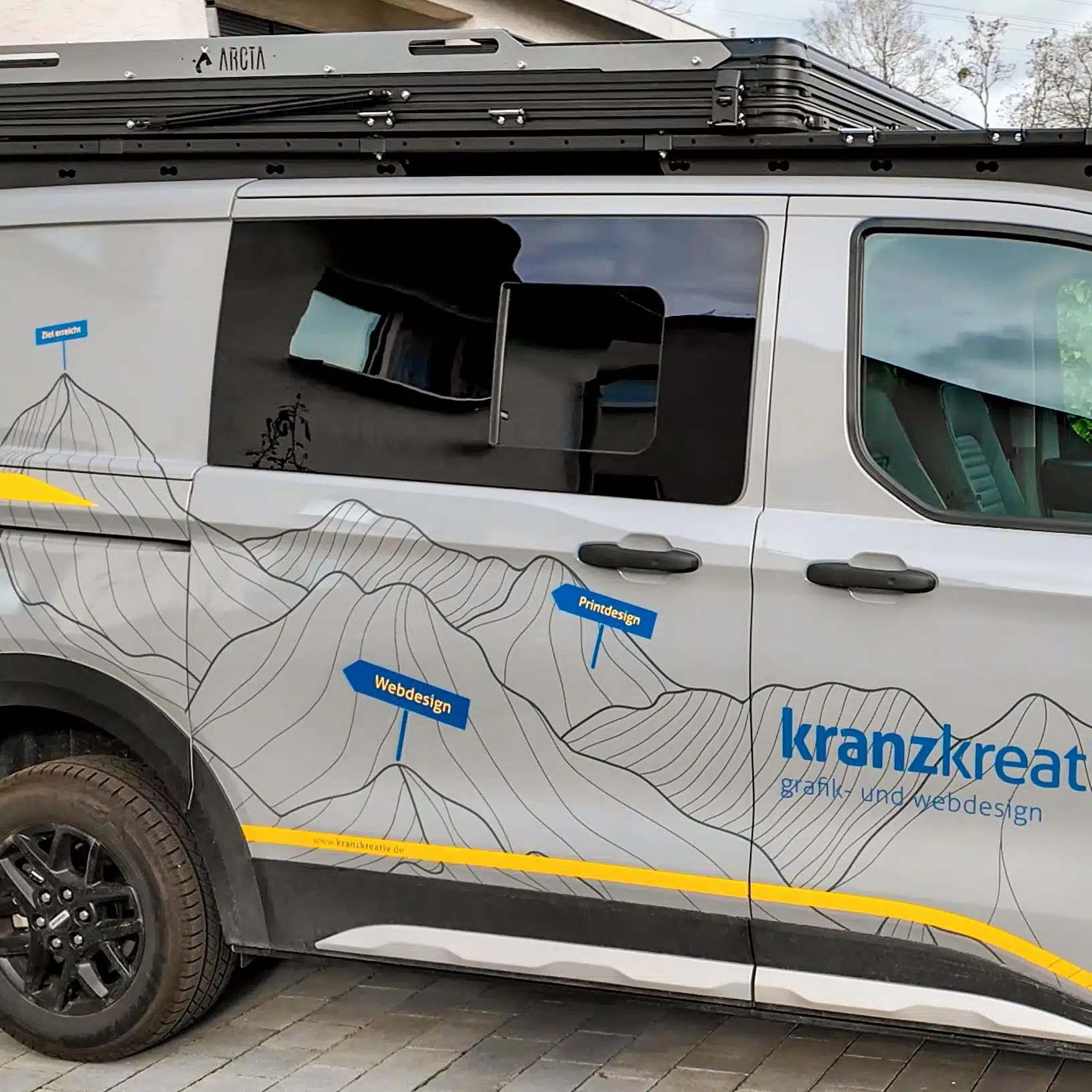 Wir haben den Kleber auf den Ausschnitt am Fahrzeug aufgetragen.