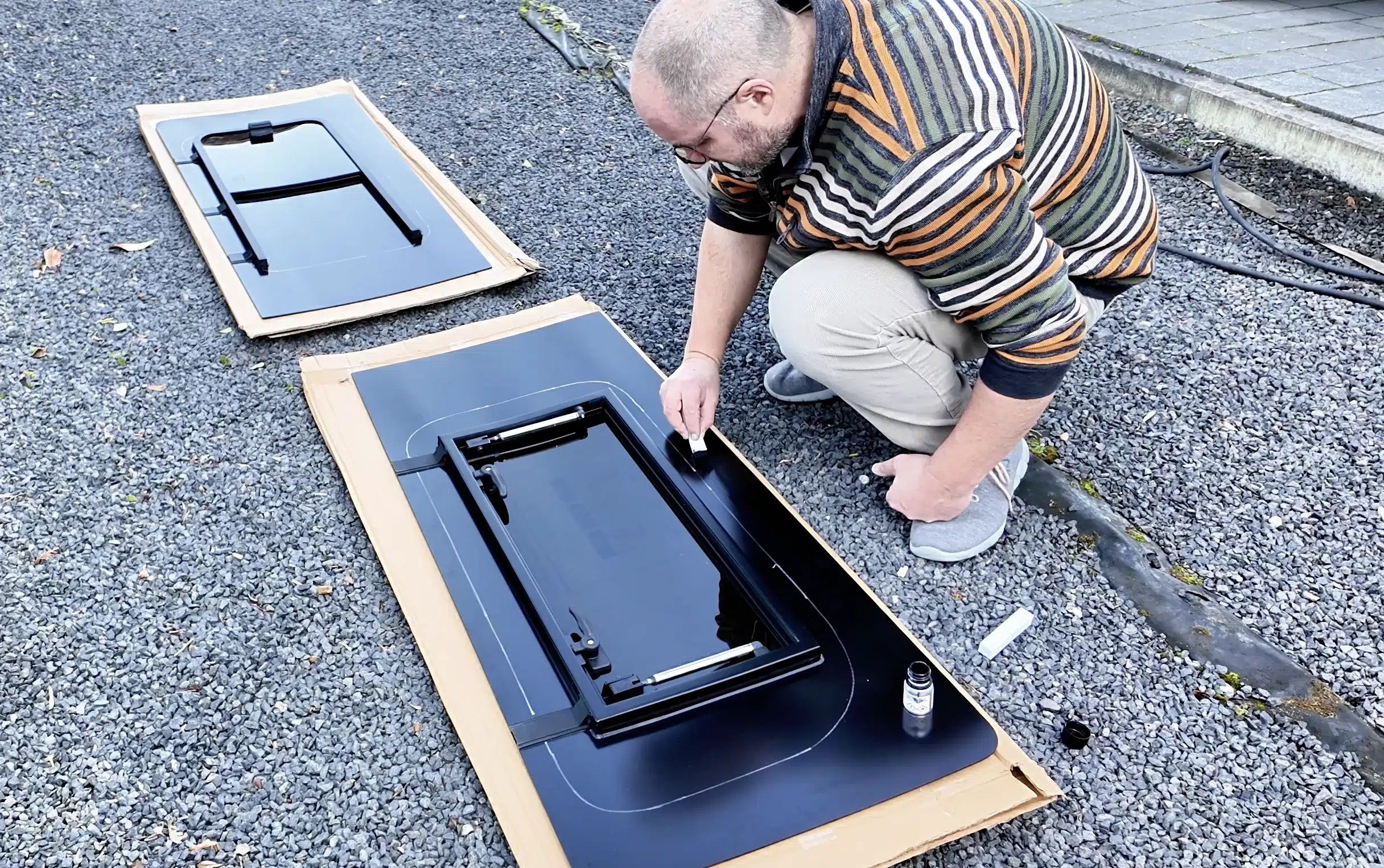 Also haben wir wieder die Stichsäge angesetzt und unserem Ford Transit Custom („Henry“) gleich zwei neue Öffnungen verpasst – diesmal für Seitenfenster von Carbest:
