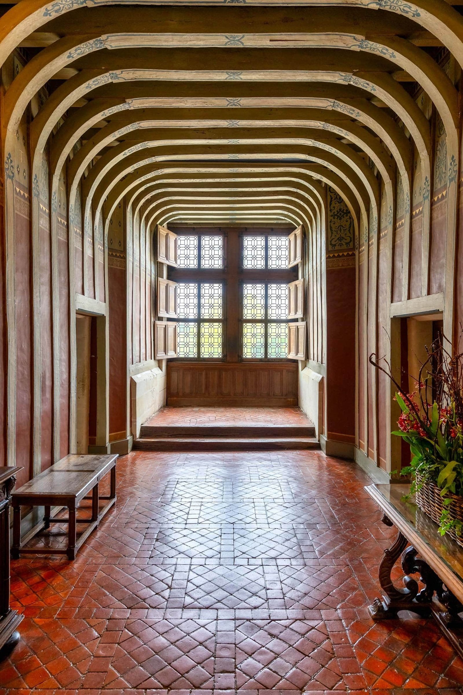 Besonders beeindruckt hat uns die lange Galerie über dem Fluss. Durch die Fenster fällt das Licht auf den Boden, draußen fließt der Cher vorbei – ein Ort, an dem man sich gut vorstellen kann, wie hier einst Feste gefeiert oder Spaziergänge gemacht wurden.