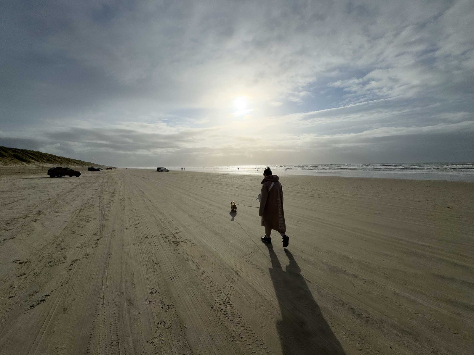 Der Strand befindet sich hinter einer weitläufigen Dühne, etwa 10 Gehminuten vom Platz entfernt. Wer nicht hinlaufen möchte, fährt tagsüber einfach mit dem Auto oder Camper auf den Strand – ein besonderes Erlebnis!