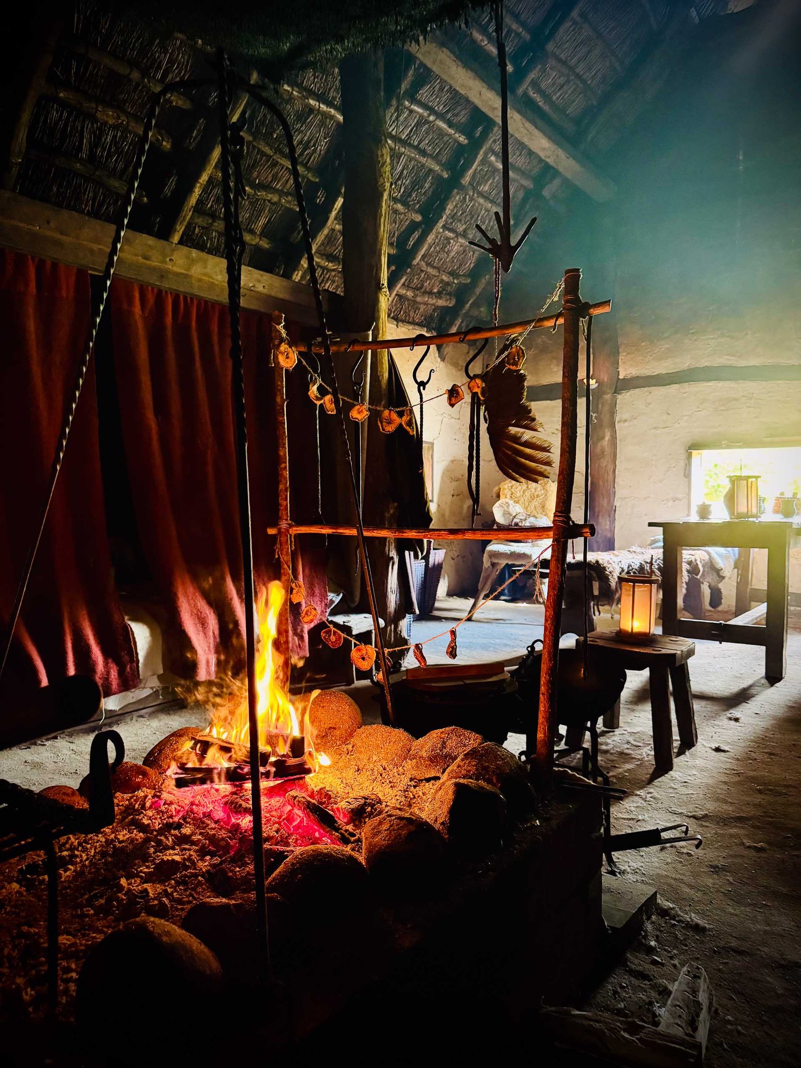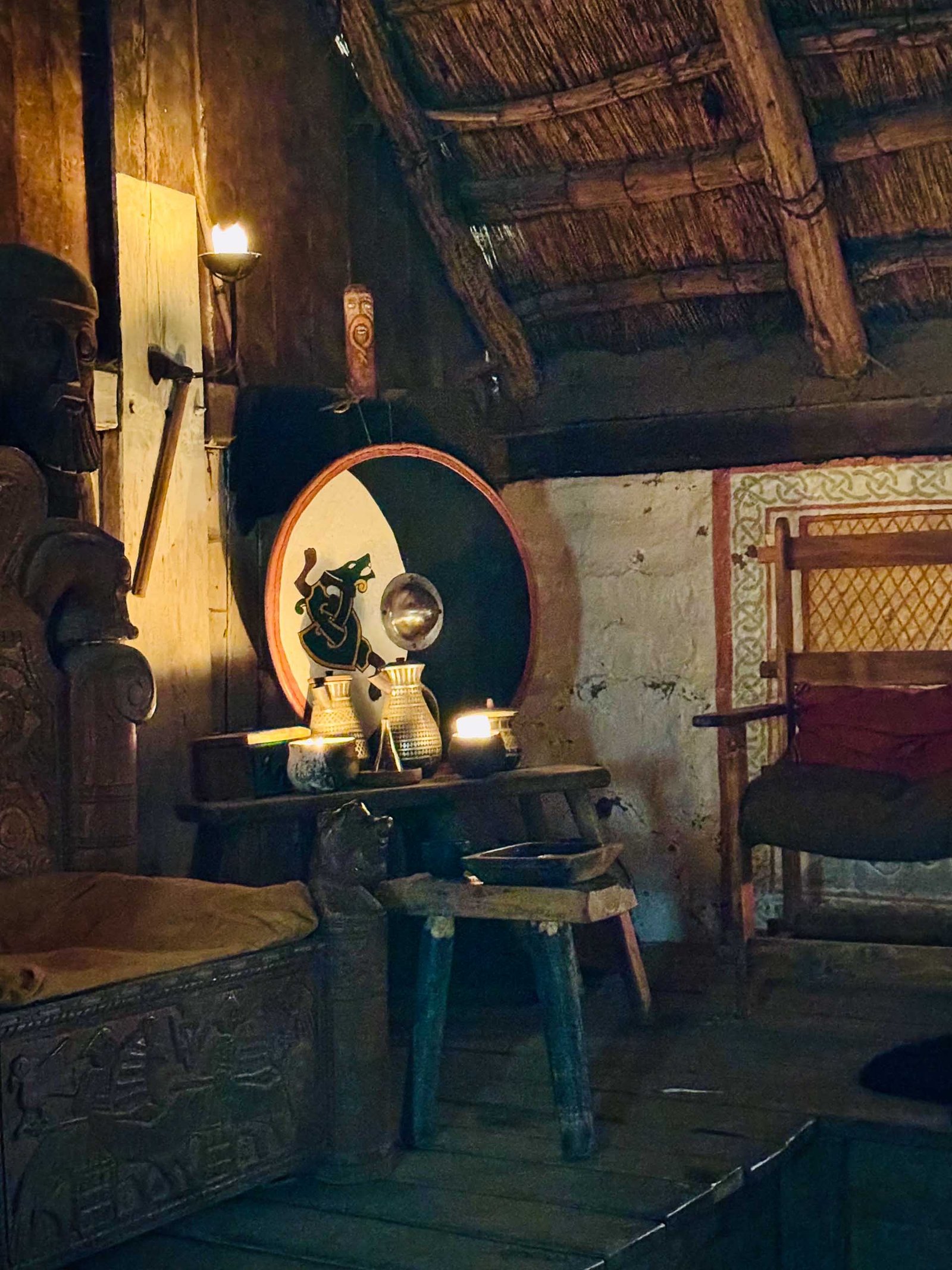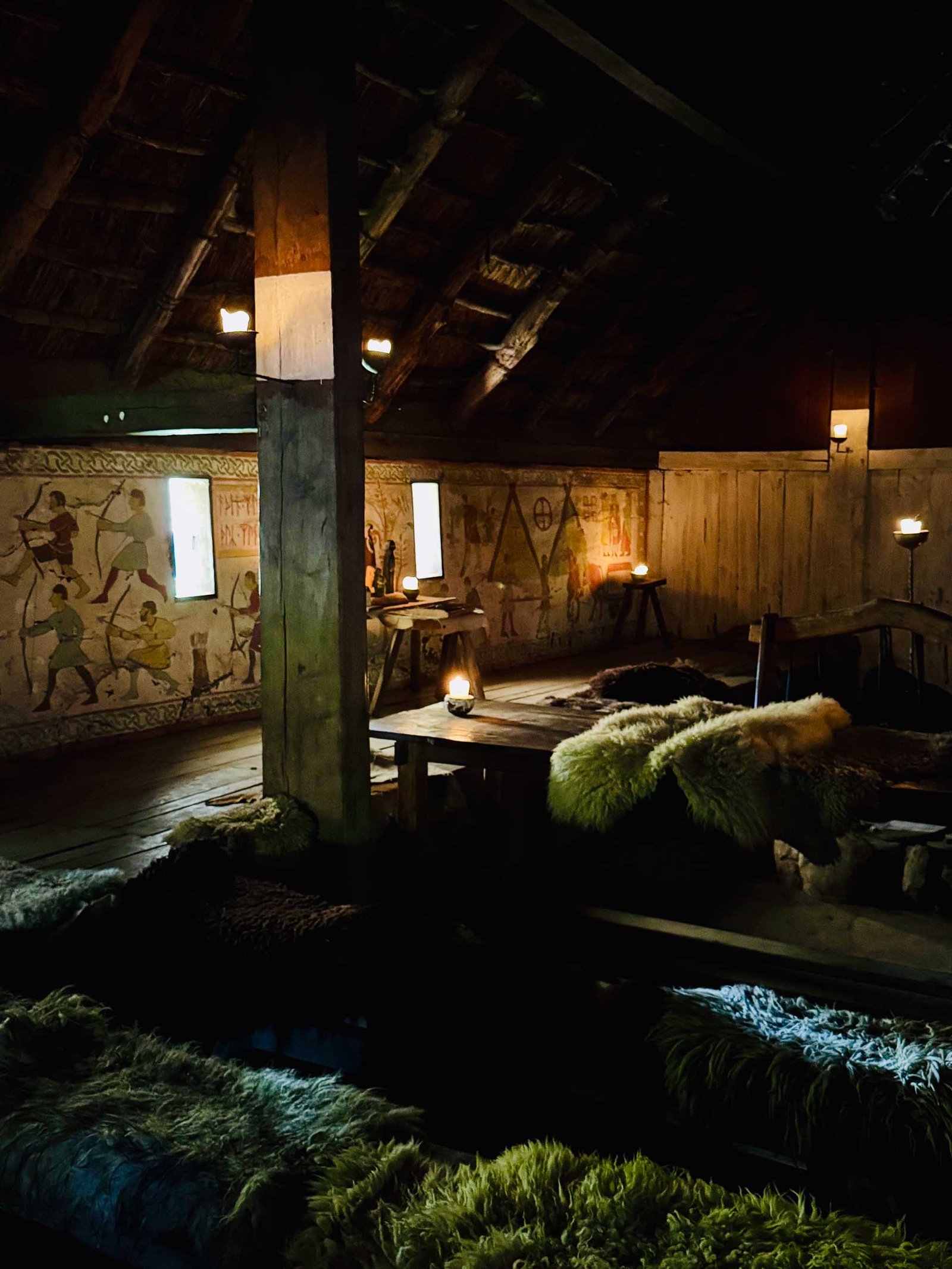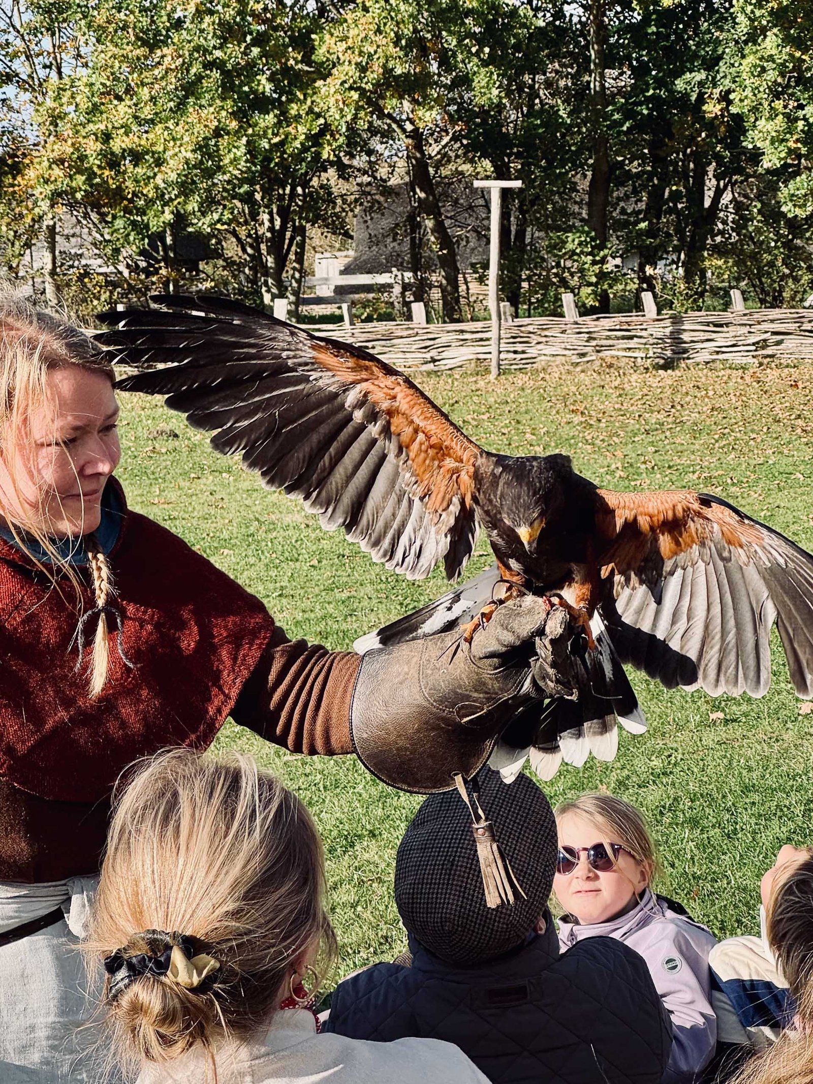 Gaukler unterhalten mit Fakeln, und eine Greifvogelschau mit Eulen, Adlern und Falken sorgt für wissenswertes Staunen. Man kann Bogenschießen, weben, Pfeile bauen und so in das einfache Leben der Wikinger eintauchen.