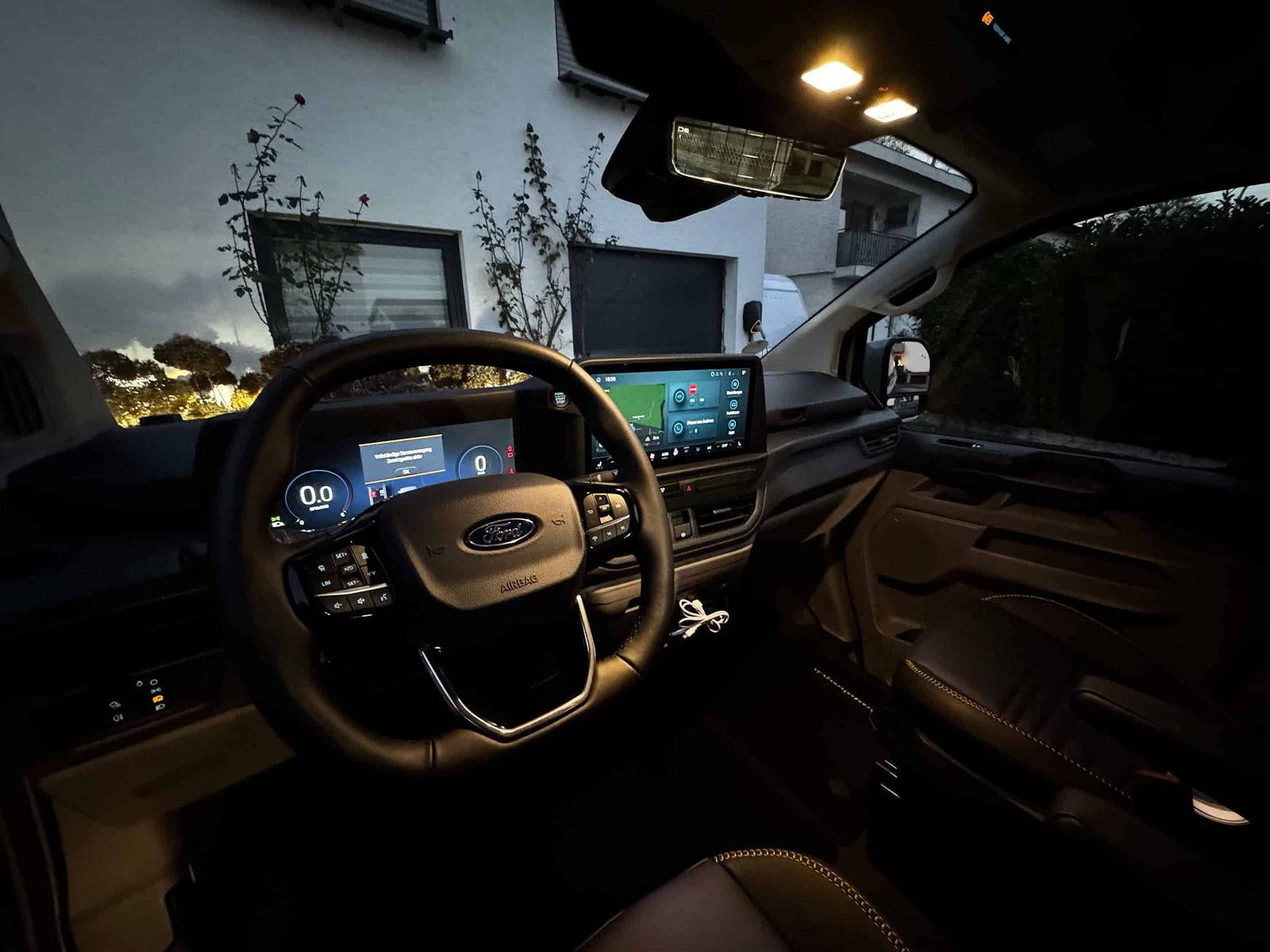 Das digitale Cockpit im Transit ist richtig übersichtlich aufgebaut und lässt sich intuitiv bedienen. Hat man seine persönlichen Einstellungen einmal gefunden, fährt sich der Bus extrem entspannt.
