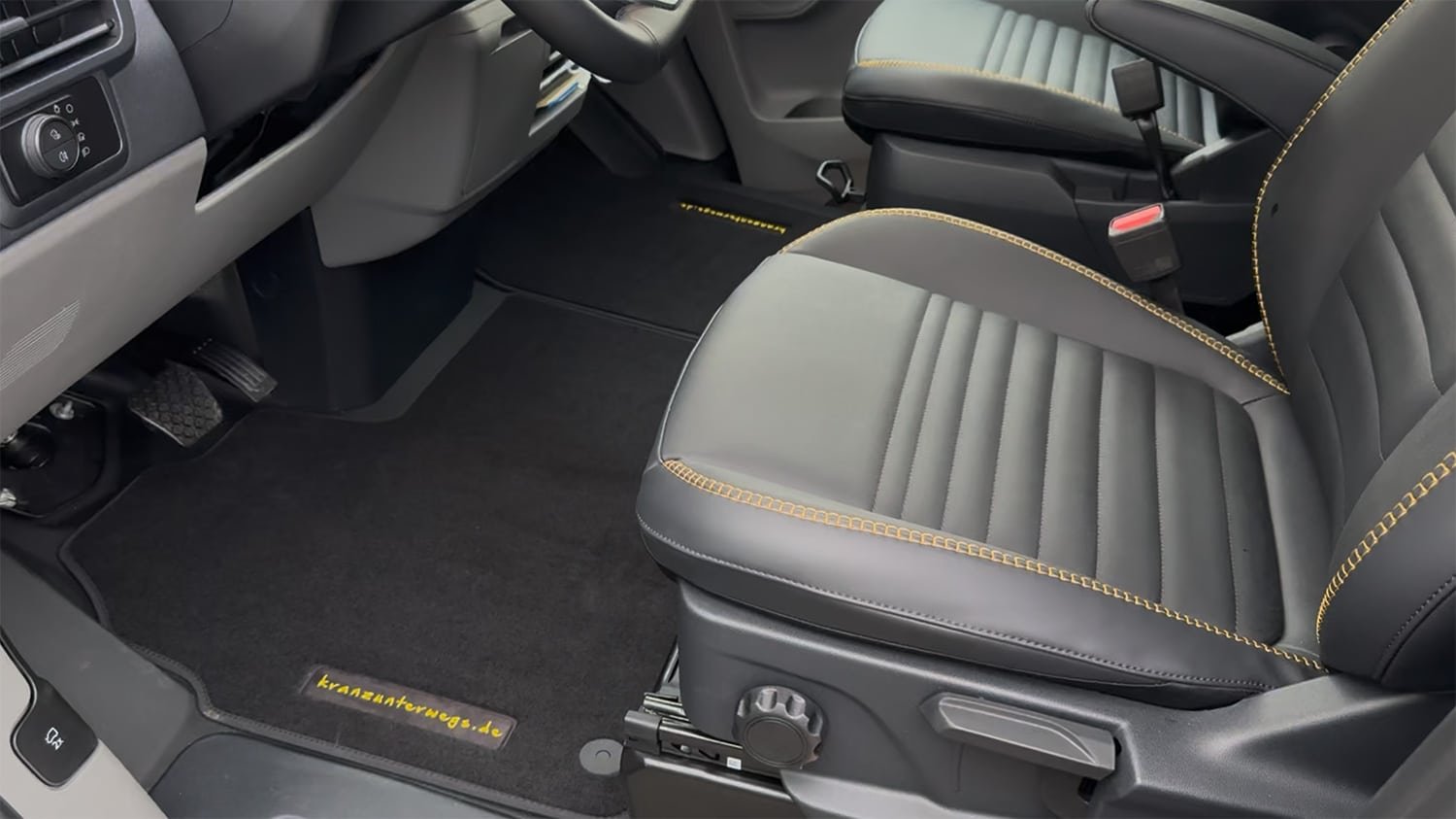 Aber als wir die Matten eingelegt haben, stellten wir fest: Schwarz wirkt viel stimmiger, weil Fahrer- und Beifahrermatte direkt aneinanderstoßen.