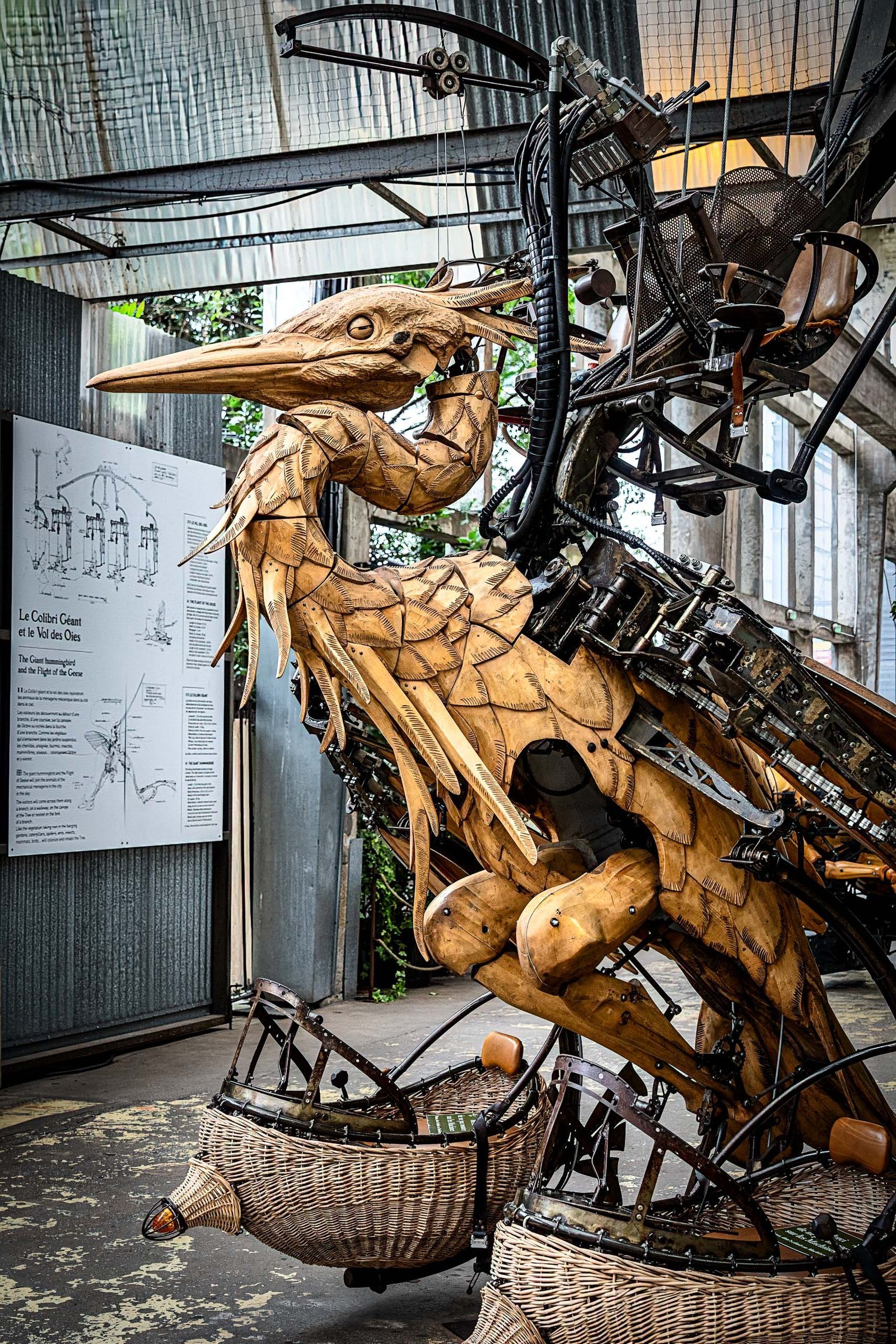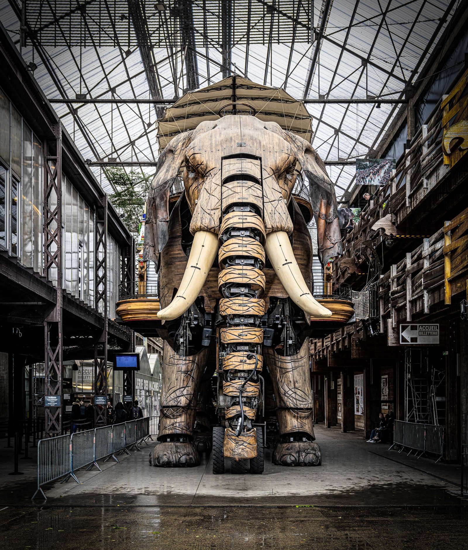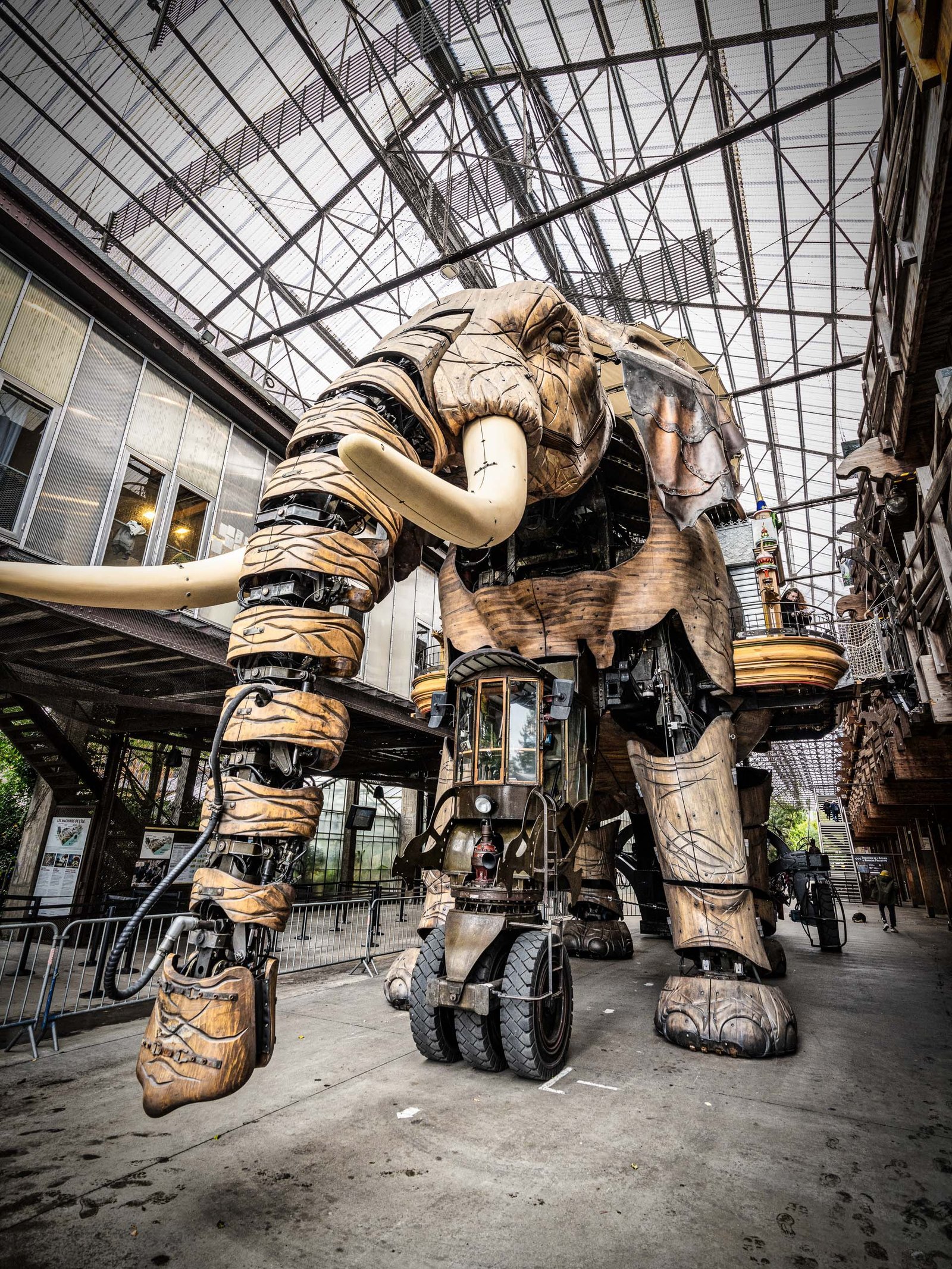 Auf dem ehemaligen Werftgelände an der Loire ist hier seit den frühen 2000er-Jahren eine riesige, mechanische Fantasiewelt entstanden. Die Künstler François Delarozière und Pierre Orefice haben sich dabei von der Industriegeschichte der Stadt und von Jules Verne, der aus Nantes stammt, inspirieren lassen. Herausgekommen ist eine Mischung aus Kunst, Technik und Theater, die irgendwo zwischen Steampunk, Jules Verne und Mad Max liegt.