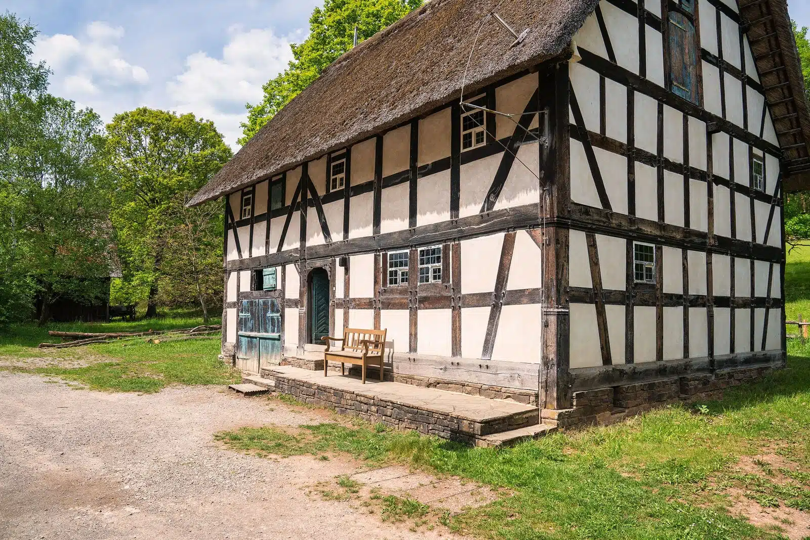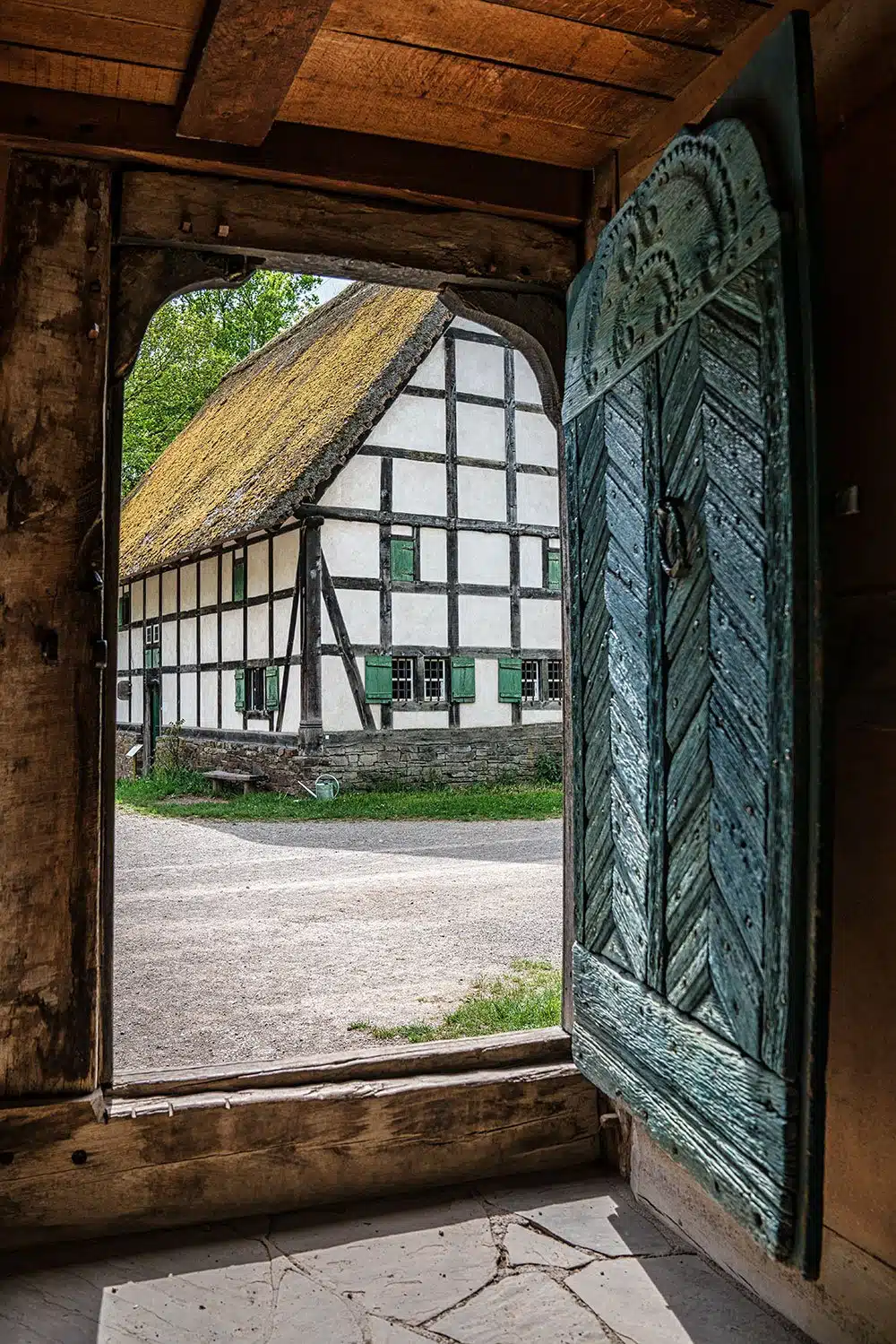 Das Museum ist wie eine Sammlung ganzer Dörfer aufgebaut. In verschiedenen Bereichen werden typische Siedlungen aus dem Rheinland, der Eifel, dem Westerwald und dem Niederrhein gezeigt – mit originalen Häusern, Höfen, Scheunen und Werkstätten, die hier Stein für Stein wieder aufgebaut wurden. Jedes Dorf steht für eine andere Epoche und eine andere Lebenswelt. Man läuft also nicht einfach durch ein Museum, sondern durch echte Straßenzüge, vorbei an Fachwerkhäusern, Backhäusern, Ställen und kleinen Gärten.