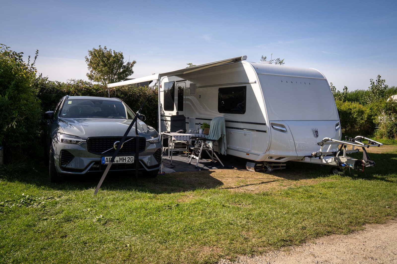 Heute sind wir mit unserem Tabbert Pantiga 550e, einem Dachzelt und natürlich Kalle unterwegs – unserem treuesten Reisegefährten auf vier Pfoten.