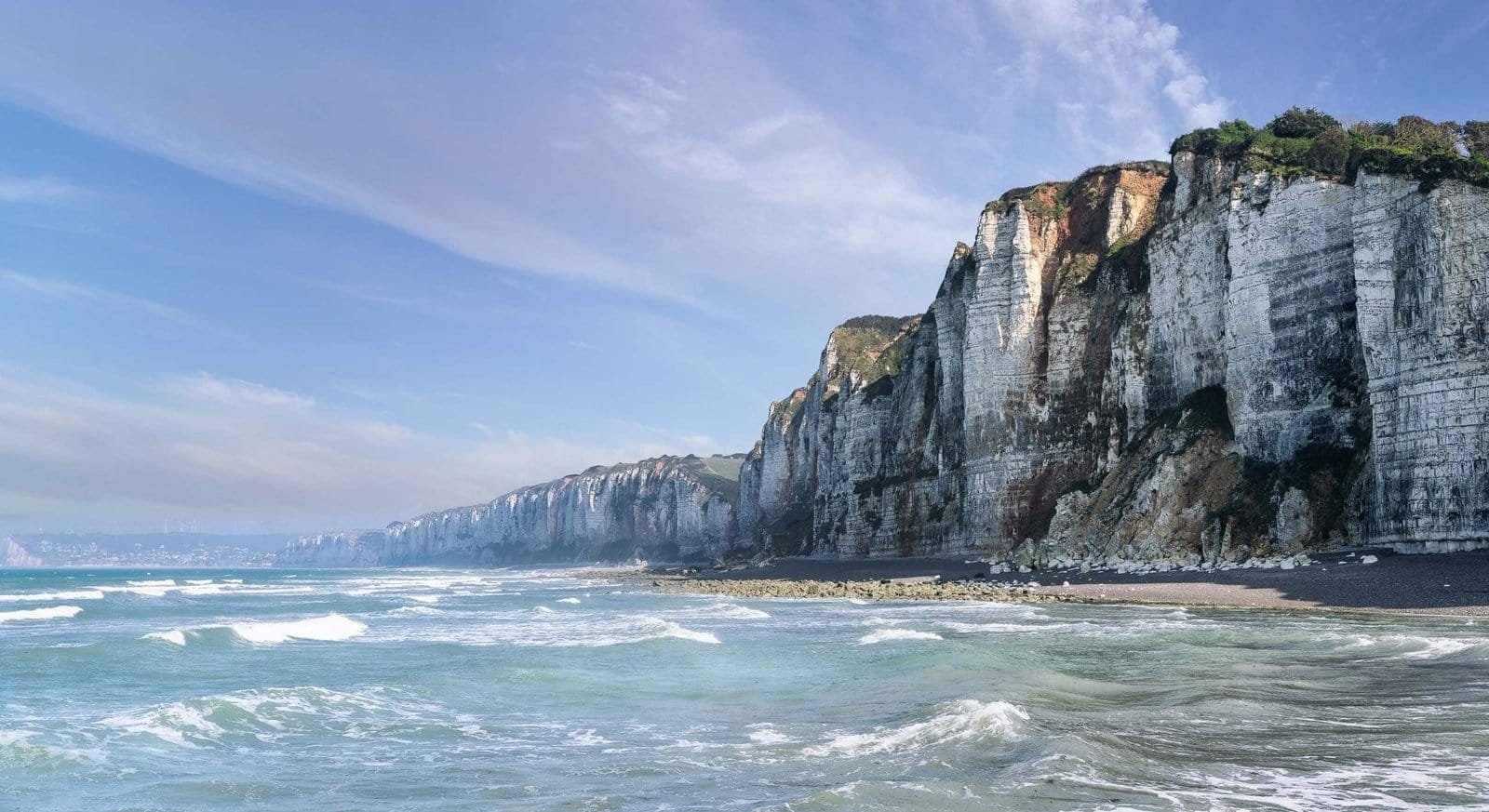 Der Strand von Yport ist von dramatischen Felsformationen umgeben, die sich an die zerklüfteten Klippen schmiegen und eine atemberaubende Kulisse bieten. Besonders in den frühen Morgen- oder späten Abendstunden, wenn das Licht die Küste in warmen Tönen einfängt, verwandelt sich der Ort in ein Paradies für Fotografen. Die Felsen und Klippen bieten einzigartige Fotomotive, besonders bei Ebbe, wenn die Felsformationen teilweise freigelegt werden und das Meer die Kalksteinwände sanft umspült. Wir haben hier endlose Möglichkeiten für stimmungsvolle Aufnahmen gefunden – von der Weite des Ozeans bis zu den faszinierenden Strukturen der Klippen.